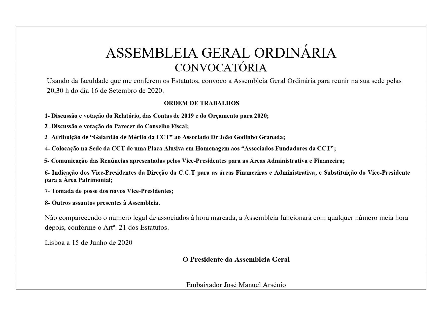 Convocatória da Assembleia Geral Ordinária 2020 - Adiada