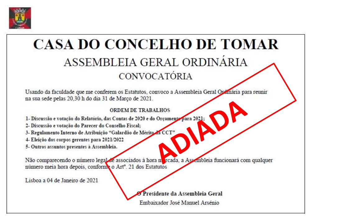 Convocatória da Assembleia Geral Ordinária 2021 - Adiada